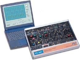 ![]() Technical Characteristics The trainer is enclosed in a metal case, which has a wide experiment printed circuit board (22 cm x 34 cm). This ensures easy handling and good visibility of the components. The components are located on the board, which has a silkscreen print of the analytical circuit and component drawings. The central part of the experiment board includes all the circuit block drawings and the all the hands-on components and test points. The fixed components are located on the circuit board under a sturdy transparent cover. The system includes a built-in power supply with +12V, +5V, and variable
